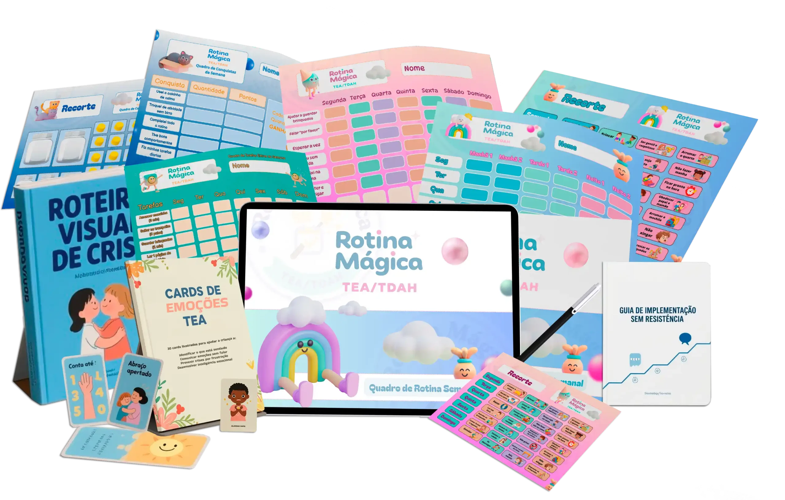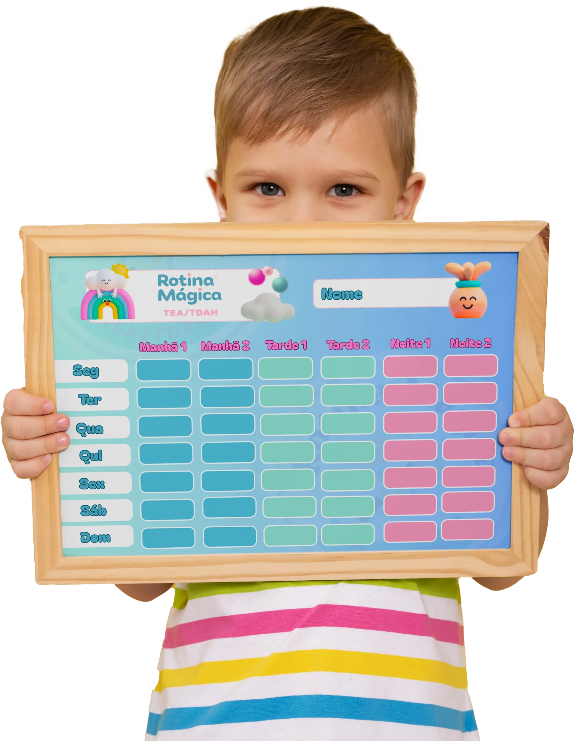 Mas quando ela VÊ num quadro colorido e organizado? Entende TUDO instantaneamente. Sem ansiedade. Sem crise.